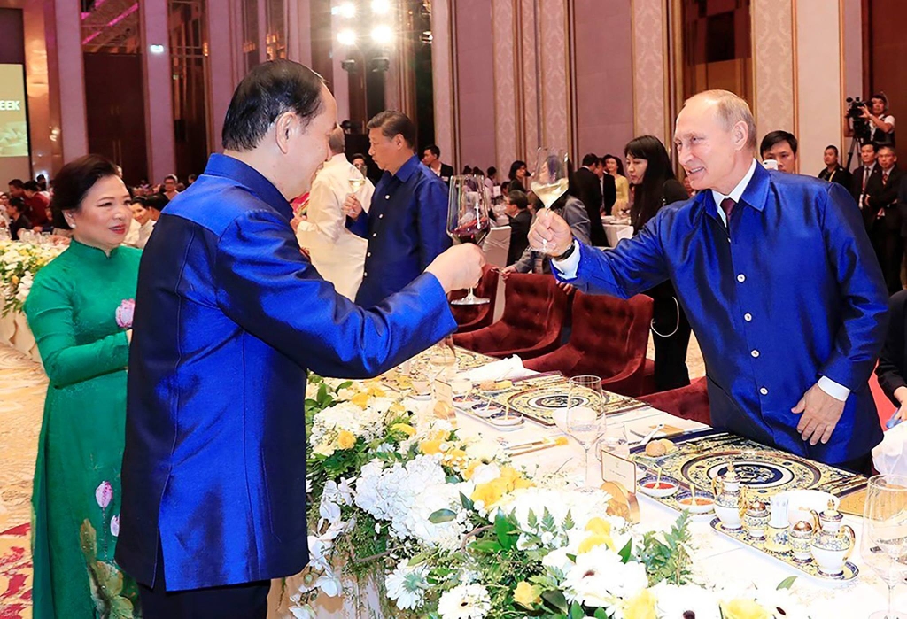 Bộ sản phẩm Hoàng Liên do gốm sứ cao cấp Minh Long chế tác miệt mài trong 2 năm đã tạo điểm nhấn đặc biệt trong tiệc chiêu đãi các nhà lãnh đạo APEC cùng phu quân, phu nhân diễn ra tối ngày 10/11 tại khách sạn Sheraton, Đà Nẵng.